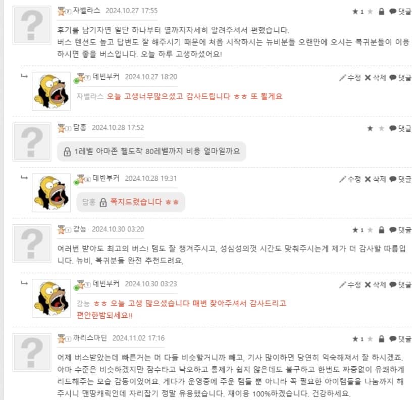 초보분들 하나하나 케어해드리며 모르시는거 이해시키면서 버스합니다 부담갖지마시고 시즌내내 즐기실분들 꼭 찾아주세요
